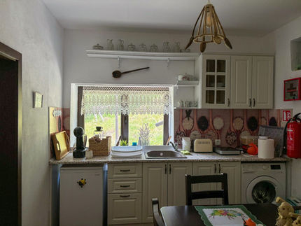 Къщата е на два етажа, с просторна веранда с външно барбекю, външна и вътрешна трапезария.